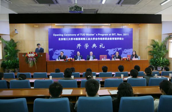 11月12日上午,我校与德国德累斯顿工业大学合作职业教育硕士项目新生开学典礼在校国际教育交流大厦三层报告厅隆重举行。出席典礼的有我校副校长赵显利教授、德累斯顿工业大学职业教育与人力资源开发硕士专业考试委员会主席Hanno Hortsch 教授、北京汽车工业控股有限责任公司组织部部长兼人力资源部部长高原先生、德累斯顿工业大学职业教育与继续教育学院副院长佟永强女士和我校国际交流处处长王庆林教授及全体新生。典礼由我校国际教育合作学院院长梅文博教授主持。
