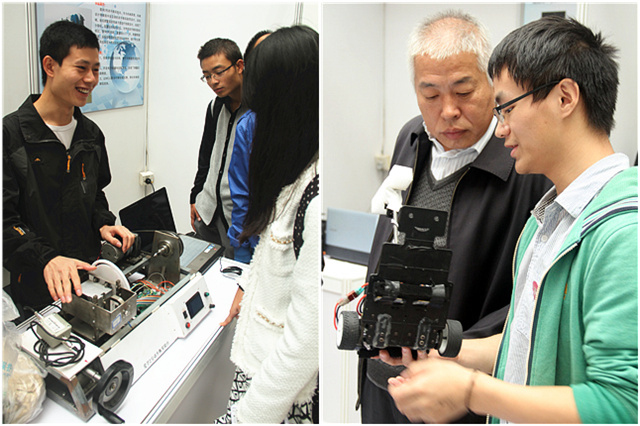 2014年10月18日至19日,中国大学生创新创业活动的顶级赛事----第七届全国大学生创新创业年会在古城名校----西安交通大学隆重举行。本次年会吸引了来自全国近300所高等院校、近千名师生代表参与。在精彩纷呈、竞争激烈展示中,北京理工大学两项参展作品得到了与会者的高度关注,这两件机器人实物作品以其在创新特点、技术难度、应用前景、研发手段等方面的绝对优势,得到了极高的评价和充分的肯定。“你们太给力了!”成为北理工作品周遭听到最多的声音。