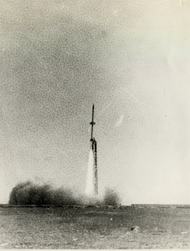1958年9月初,河北省宣化靶场不分昼夜灯火通明,北京工业学院的师生们正在紧张地进行“东方系列”火箭发射准备工作。1958年9月8日,代号为“东方-1号”的二级固体高空探测火箭垂直耸立在发射场,下午两点,一切准备就绪。随着操作员按下电钮,第一级火箭立即点火、起飞,伴随着巨响,火箭拖着数米长的火舌,带着红亮的尾光,如同东方巨龙腾飞而起直冲云霄,消失在天幕里。几分钟后,在靶场远处传来第二级火箭落地的“轰隆”声,整个发射过程表明:火箭系统飞行正常,达到设计要求。这一次成功的发射向中国大地宣告,中国第一枚自行研制的火箭——二级固体探空火箭“东方-1号” 发射成功。