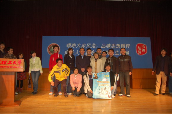 最后,刘明奇老师代表学校向周秉德老师赠送礼物,并表达了理工学子对周老师的欢迎,希望她以后还能来理工大学,带给同学们精彩的讲座。