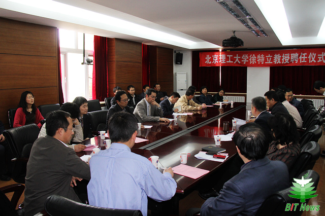 信息学院龙腾院长代表学院感谢郝阳教授选择北京理工大学信息学院作为国内主要的合作平台,郝阳教授的加盟对电磁场与微波技术冲击国家重点学科,进而推动电子科学与技术冲击国家重点一级学科将提供巨大的支持,希望郝阳教授在岗位上继续发挥自己的学术专长,把学科建设提上一个新的台阶。