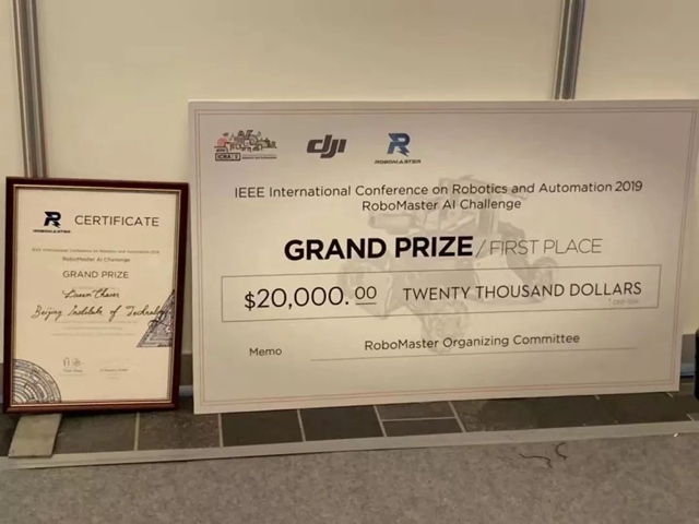 加拿大时间2019年5月20日至5月22日,ICRA 2019 RoboMaster人工智能挑战赛(ICRA 2019 RoboMaster AI Challenge),在加拿大蒙特利尔举办。本次挑战赛吸引了包括美国加州大学伯克利分校、约翰.霍普金斯大学、弗吉尼亚理工、加拿大阿尔伯塔大学、澳大利亚墨尔本大学、中国科学院、浙江大学、东北大学、西安交通大学、北京理工大学在内的,来自10个国家的知名机器人与自动化研究机构的68支代表队参加角逐。最终,北京理工大学的机器人战队“Dream Chaser”勇夺该项高水平机器人国际挑战赛总冠军。