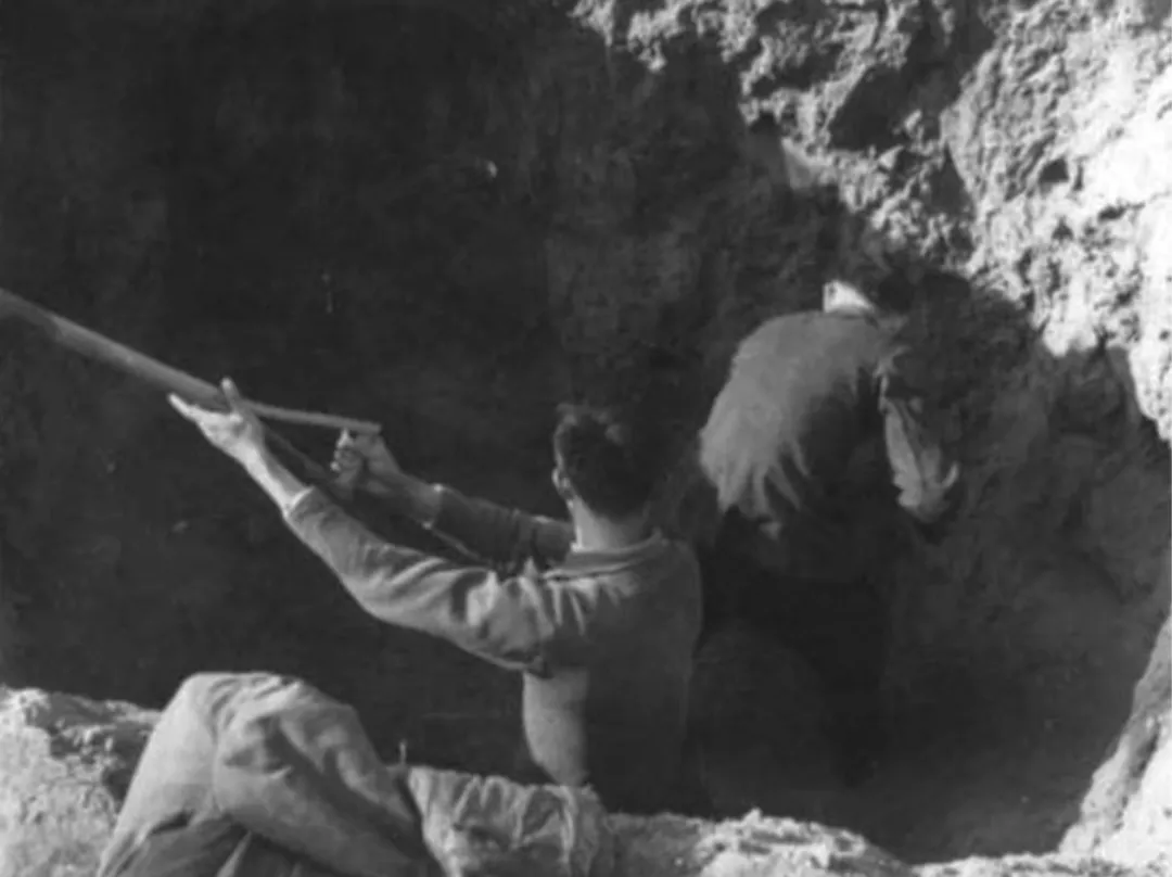 师生们正在挖掘用于火箭发动机地面试验的土坑