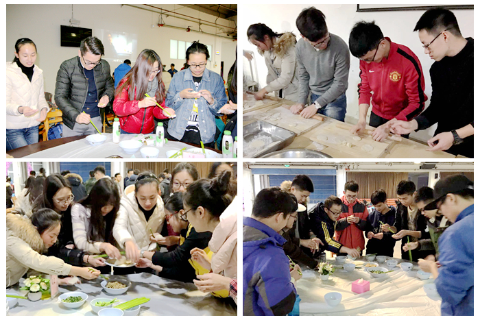 晚会在开场视频中正式拉开帷幕。首先是晚会的第一个重磅环节——百人齐包饺子。大家一起动手行动,享受着这份喜悦,用同学的话来说就是自己包的饺子吃起来更有意义。组织者希望借饺子的“更岁交子”之意,将“喜庆团圆”和“吉祥如意”送给在场的每个人,也为本次晚会打下了温馨、热闹的基调。