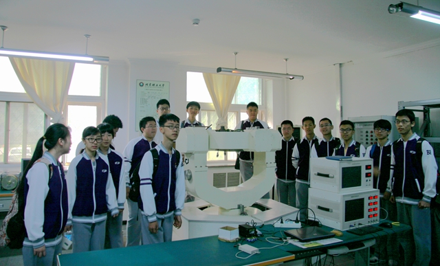 师生们首先来到北京理工大学导航制导与控制教育部工程中心,在自动化学院石永生老师的带领下参观了惯性器件与系统测试实验室。惯性制导技术是利用惯性原理控制和导引运载火箭飞向目标的技术,在航空航天领域有着非常重要的应用。石永生老师详细地给同学们讲解了惯性制导技术的原理,介绍了各种实验器材的功能,其中包括大型的陀螺仪、转台等专用设备。通过演示设备,深入浅出地回答同学们的问题,使同学们受益匪浅。