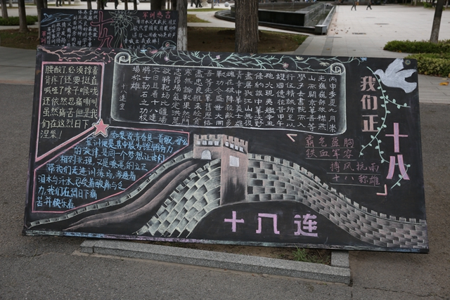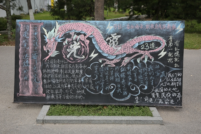 编辑:辛嘉洋 审核:徐贵宝 阅读次数:【编者按】9月1日,为丰富军训生活,活跃军营文化,加强连队交流,展现连队风采,北京理工大学2016年学生军训旅开展了板报评比活动。军训旅副总指挥徐贵宝、马晓宁、苟曼莉、各团政委以及各营教导员担任评委。各连队学员充分发挥想象力、创造力和设计能力,用一张黑板展示他们心中的军训生活,用一盒粉笔勾勒橄榄绿的的青春年华。