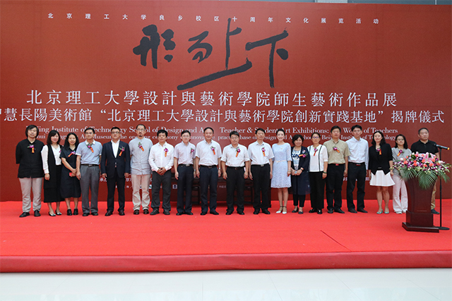 2017年9月16日下午,由北京理工大学主办的“北京理工大学良乡校区十周年文化展览活动:形而上下——北京理工大学设计与艺术学院师生艺术作品展”暨智慧长阳美术馆“北京理工大学设计与艺术学院创新实践基地”揭牌仪式于北京智慧长阳美术馆举行。北京市房山区副区长齐文东、北京理工大学副校长王晓锋、良乡高教园区管委会党组书记、常务副主任路鹏、房山区文化委员会党组书记、主任冀显江、房山区长阳镇镇长刘文静、北京理工大学设计与艺术学院院长杨建明、设计与艺术学院党委书记郭宏、北京理工大学良乡校区管理处处长朱光辉、智慧长阳文化产业基地董事长杨昆、智慧长阳美术馆馆长杨慧、河北省美术家协会主席 祁海峰、北京航空航天大学人文与社科高等研究院院长、北航艺术馆馆长蔡劲松、首都师范大学美术学院副院长孙涤、河北师范大学美术与设计学院教授祁凤霞、山东省山水画艺委会委员、烟台画院画家王大力、江苏无锡市青年美协副主席、无锡市书画院画家郭瑞卿、中央数字电视书画频道教学部主任张钊、北京理工大学 设计与艺术学院副院长王东声、设计与艺术学院副院长姬勇等领导嘉宾出席了开幕式和揭幕仪式。北京理工大学设计与艺术学院副书记、副院长孙飞主持了开幕式。