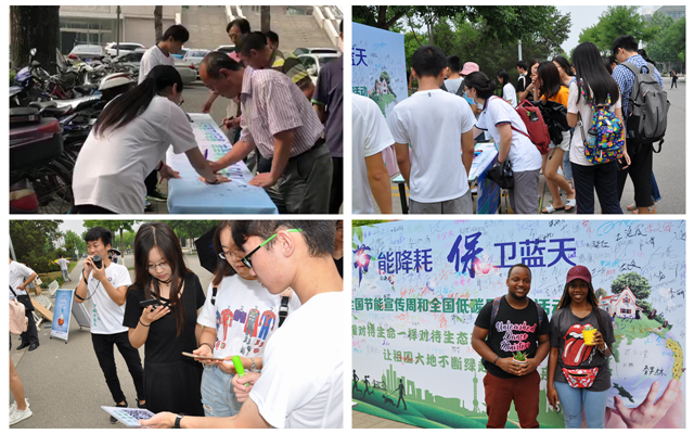 活动通过网络、微信平台,携手学生社团“绿萌”协会,在大学生群体中发布节能倡议书;在后勤集团相关中心共同努力下,在食堂、学生宿舍和教学楼内,通过悬挂横幅、海报,宣传“节粮节水节电”“绿色出行”等;6月15日,在10号办公楼前,开展了“行为节能做表率,绿色办公我先行”宣传倡议活动,发放宣传倡议书,并邀请签名承诺,为体现绿色办公,现场发放的倡议书都是利用废纸双面打印的;6月15日,在良乡校区,后勤集团联合“绿萌”协会,组织“节能降耗、保卫蓝天”现场宣传活动,学生们通过关注“绿萌”微信公众号、转发“节能降耗,保卫蓝天”倡议书、签名承诺、答题等形式参与活动。
