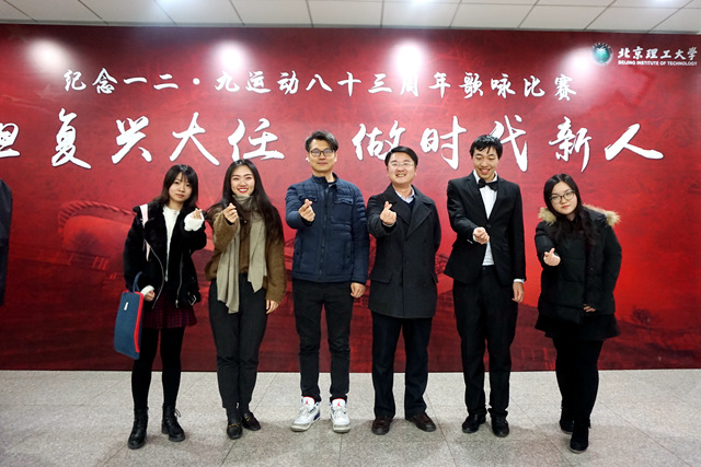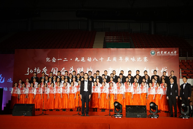 2018年12月9日,纪念一二·九运动八十三周年歌咏比赛于北京理工大学体育馆成功举办。计算机学院与外国语学院联合组队改编的六声部编曲《我爱你中国》是一二·九舞台上第一次挑战无伴奏的纯人声合唱的创新尝试,合唱团以完美的声音展现、大气的舞台表现博得95.50分的好成绩,斩获歌咏比赛第一名!
